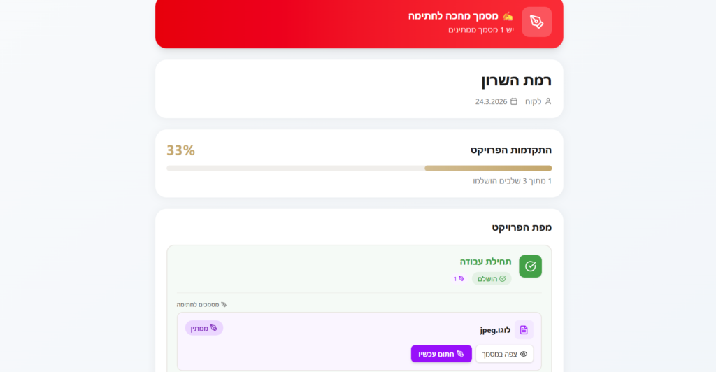המקום שבו הלקוחות רואים עדכונים בזמן אמת, חותמים דיגיטלית על מסמכים ושומרים על קשר.